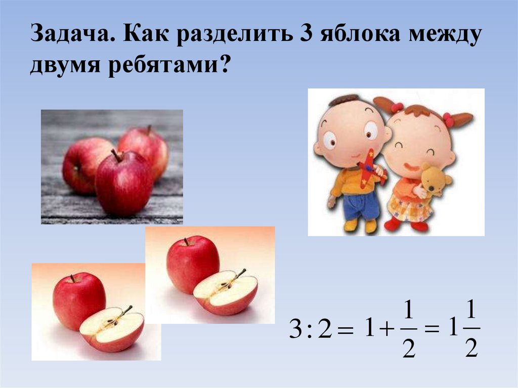 Задача. Как разделить 3 яблока междудвумя ребятами?