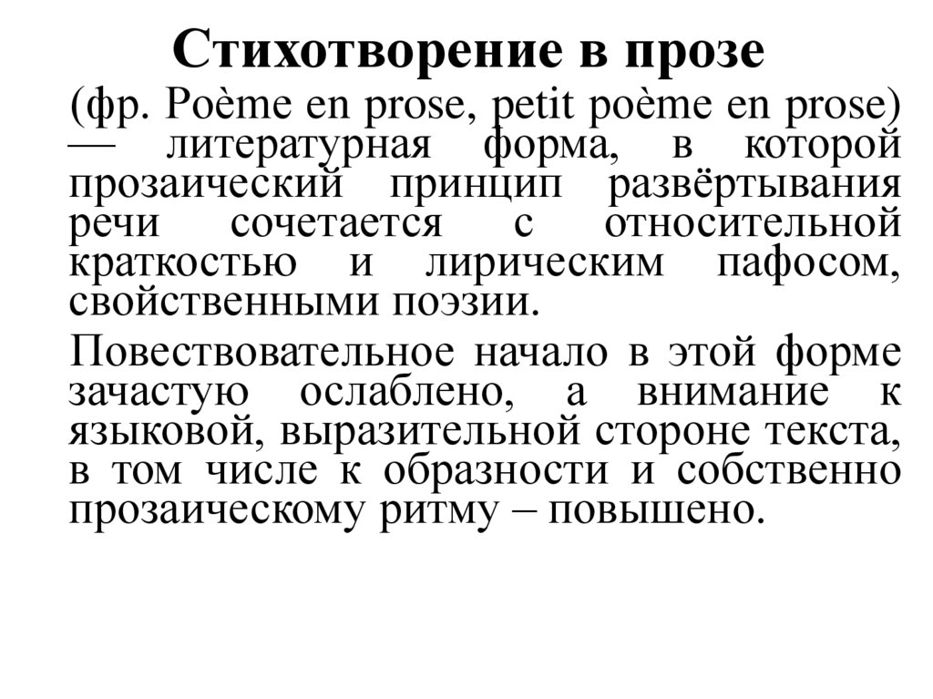 История формыРождение жанра стихотворений в прозе