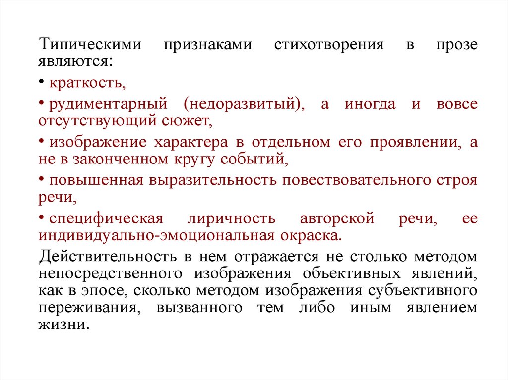 Типическими признаками стихотворения в прозеявляются: