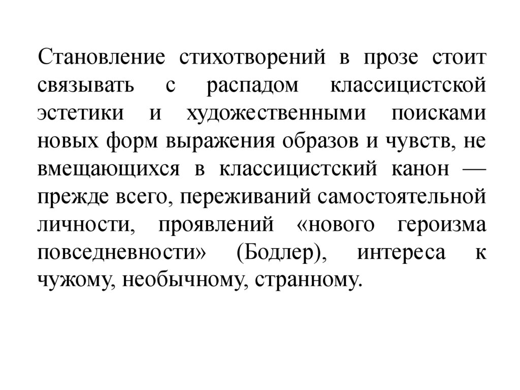 Становление стихотворений в прозе стоитсвязывать с распадом классицистской