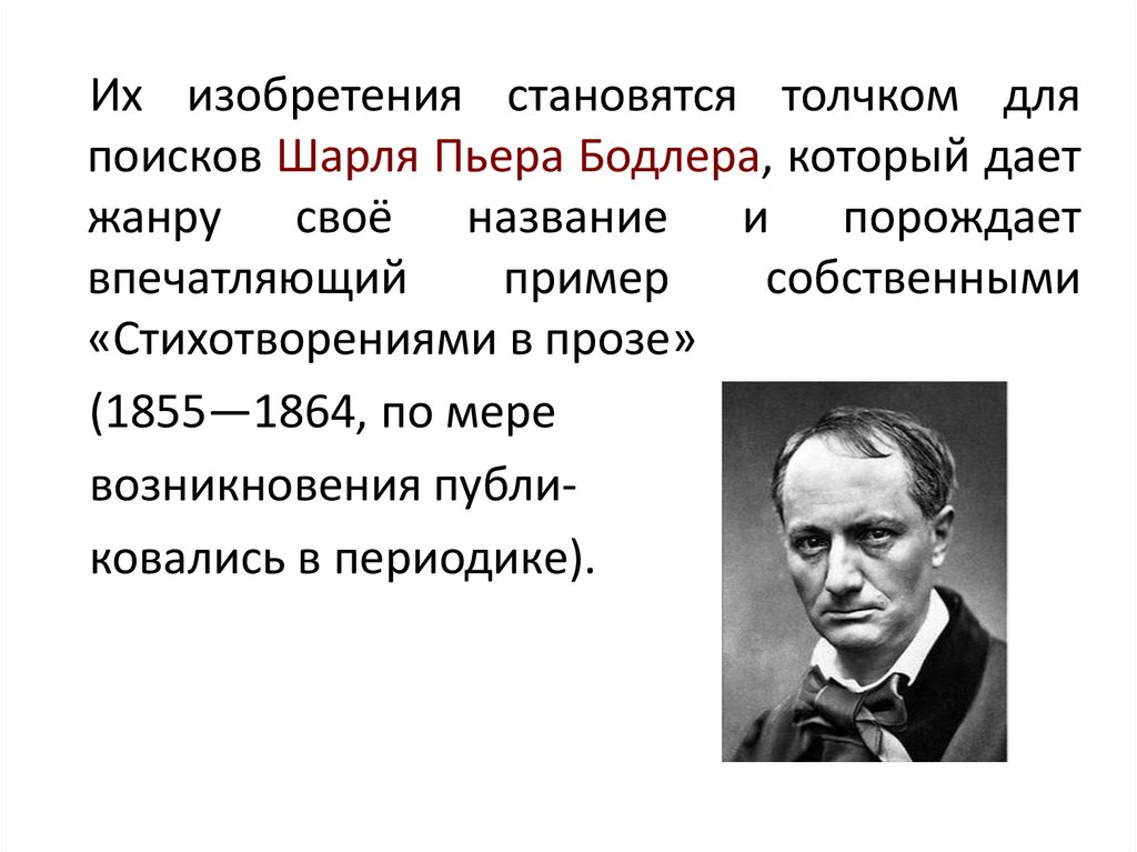 Их изобретения становятся толчком дляпоисков Шарля Пьера Бодлера, который дает