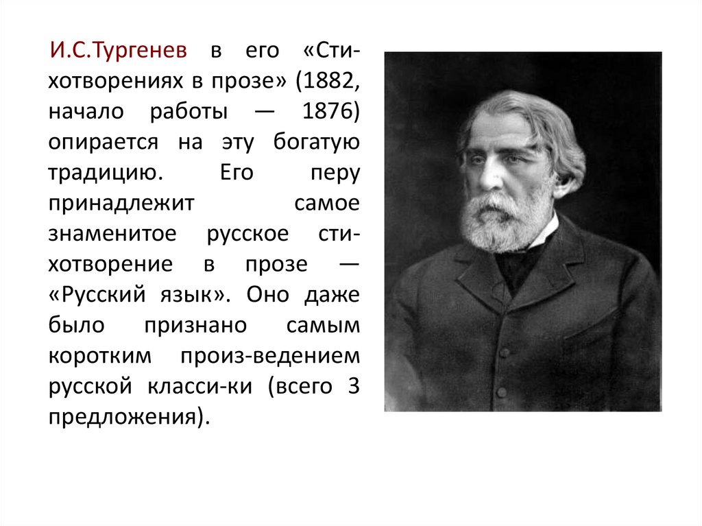 И.С.Тургенев в его «Стихотворениях в прозе» (1882,начало работы — 1876)