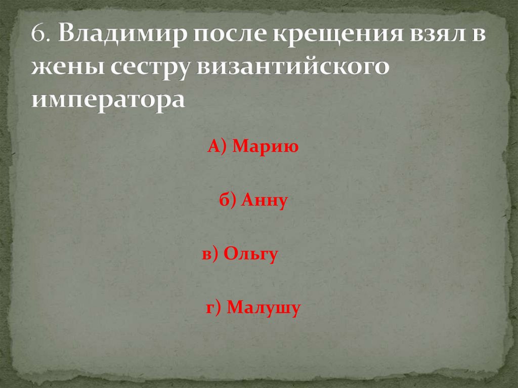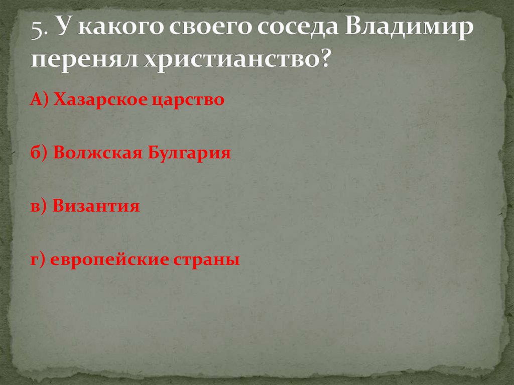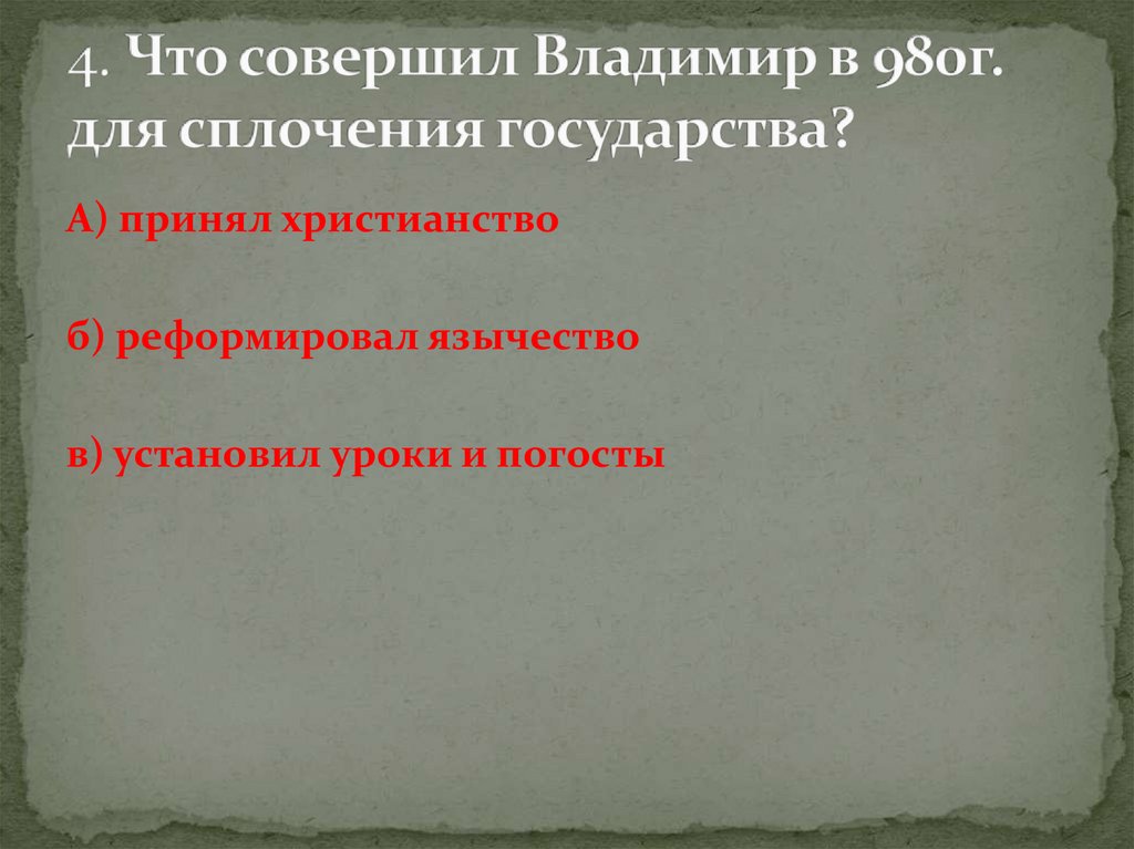 Тестирование по теме "Крещение Руси"