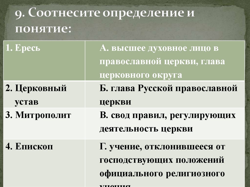 1. Ересь2. Церковный