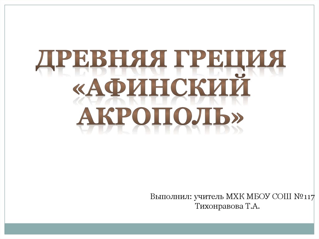 Выполнил: учитель МХК МБОУ СОШ №117Тихонравова Т.А.