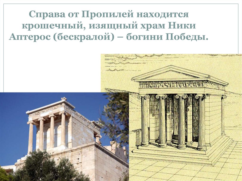 Справа от Пропилей находитсякрошечный, изящный храм Ники