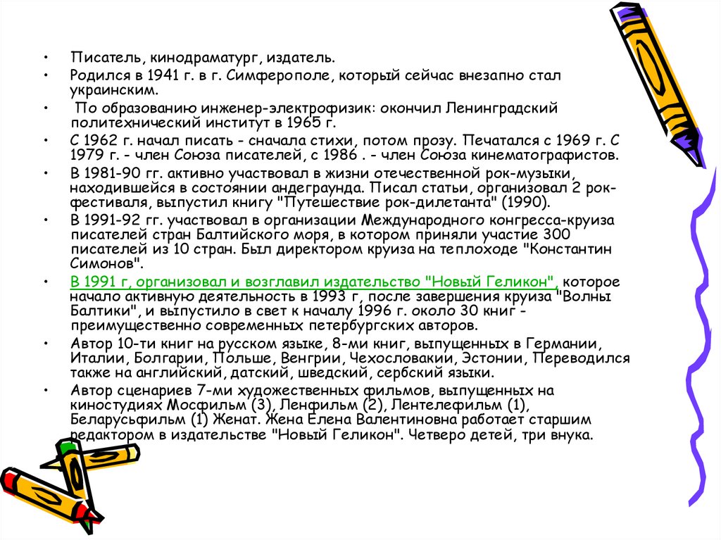 писателей из 10 стран. Был директором круиза на теплоходе "Константин