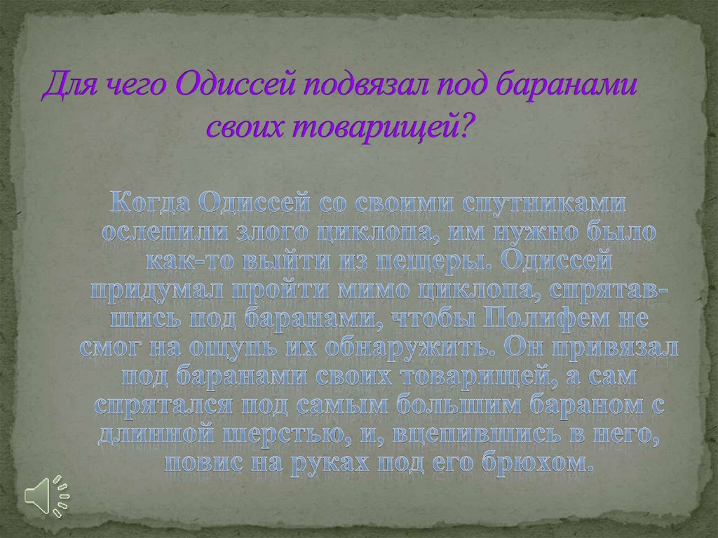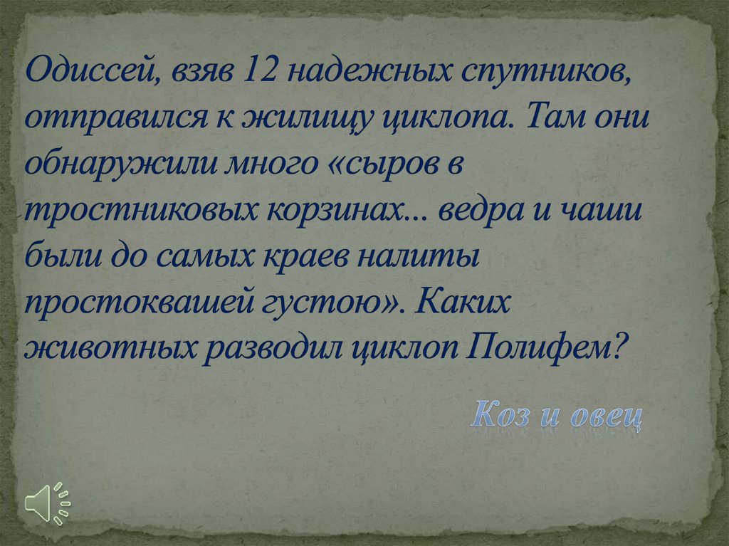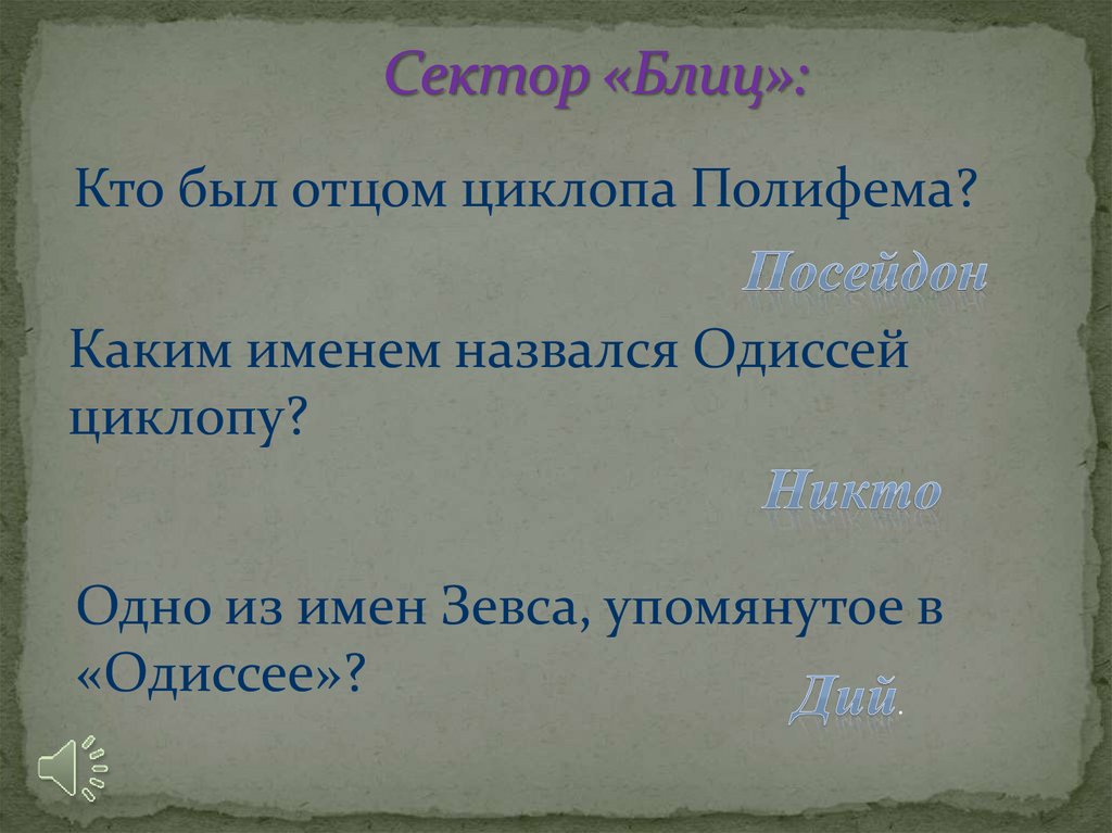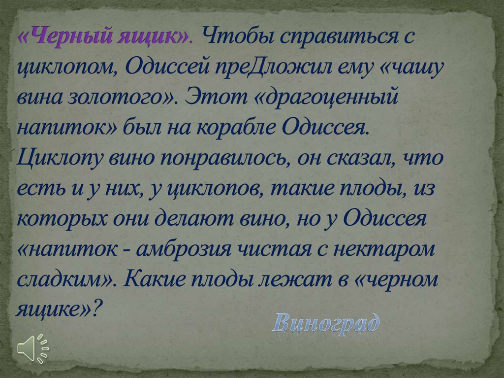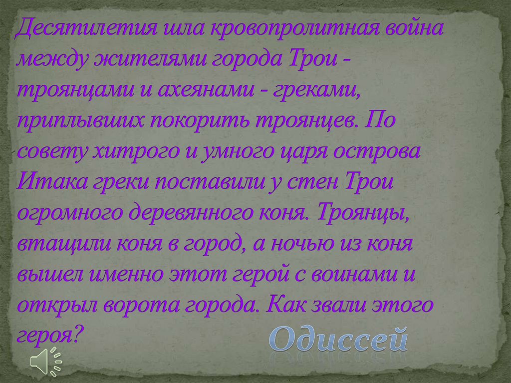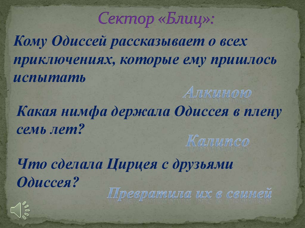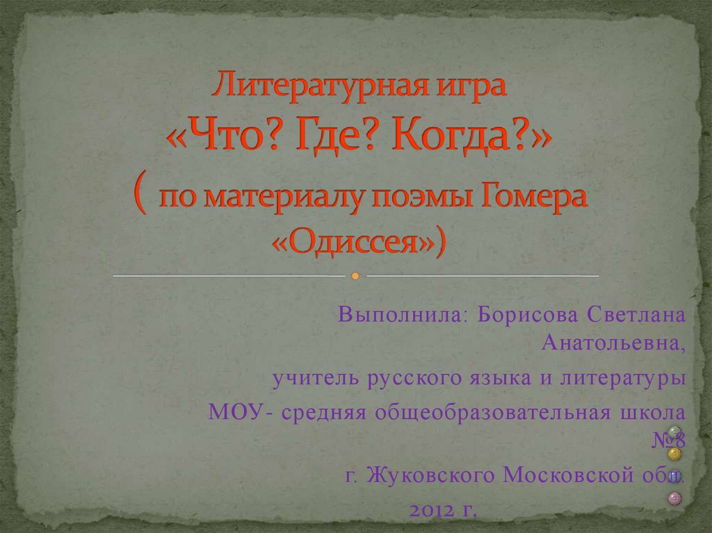 Литературная игра "Что? Где? Когда?" (по материалу поэмы Гомера "Одиссея")