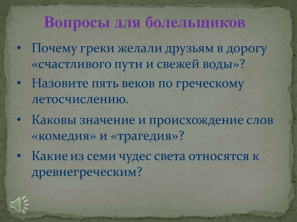 Вопросы для болельщиков• Почему греки желали друзьям в дорогу