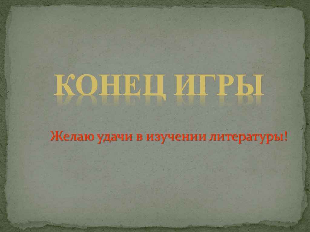 КОНЕЦ ИГРЫЖелаю удачи в изучении литературы!