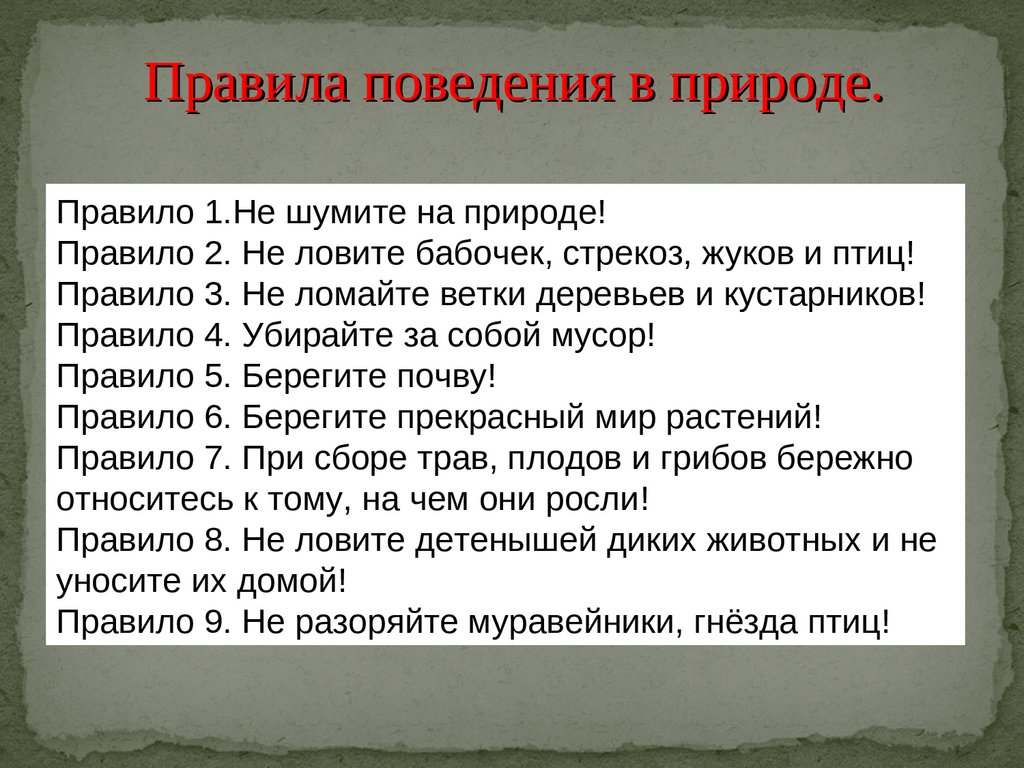 Правила поведения в природе.Правило 1.Не шумите на природе!