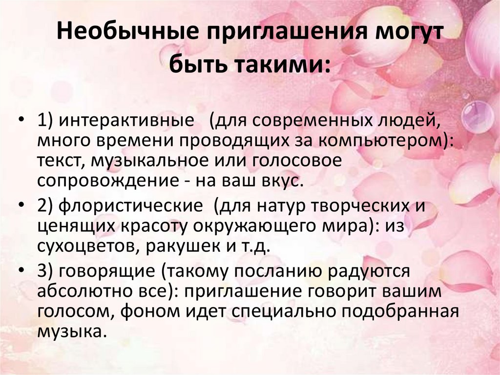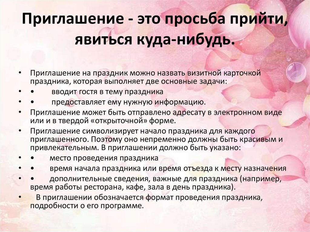 приглашенного. Поэтому оно непременно должны быть красивым и