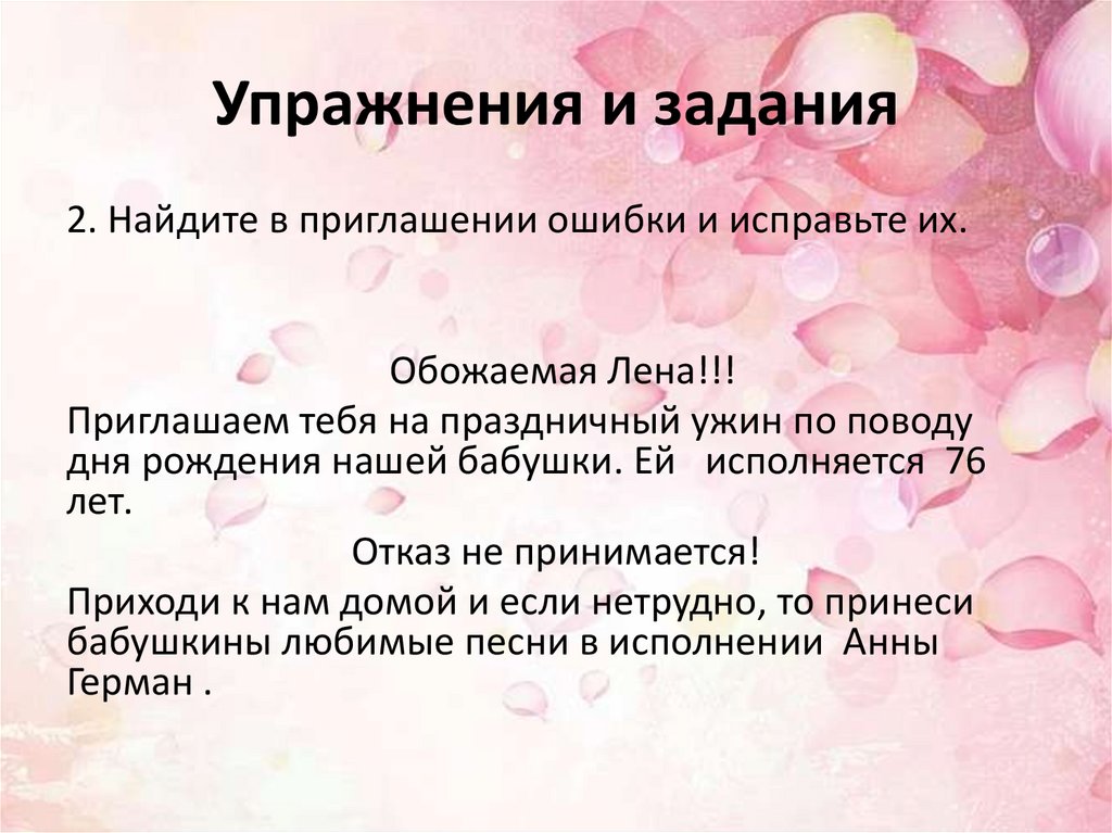 Упражнения и задания2. Найдите в приглашении ошибки и исправьте их.
