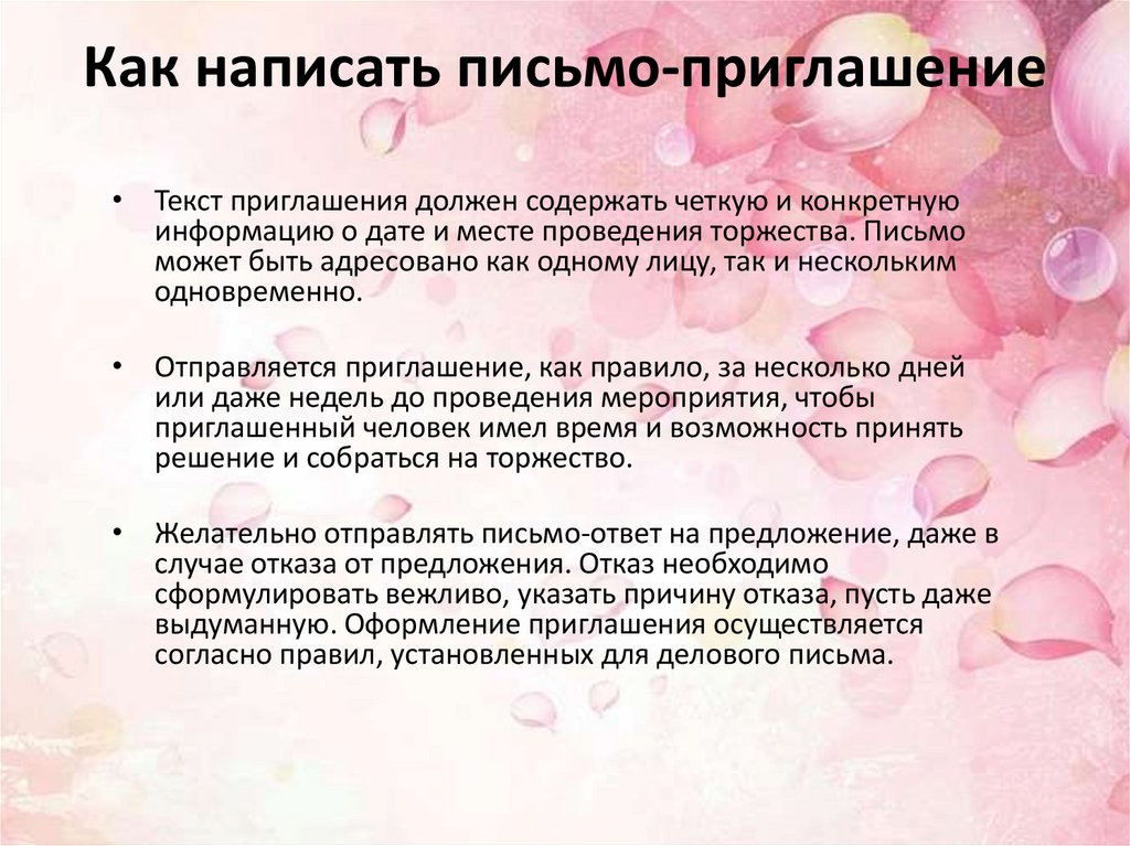 Как написать письмо-приглашение• Текст приглашения должен содержать четкую и конкретную