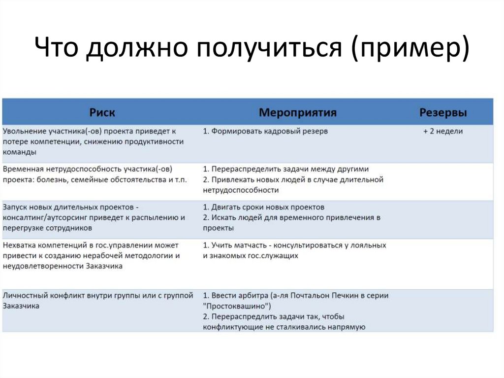 3. Составить реестр рисков (пока без вычисления вероятности и влияния, пример результата - последний слайд в