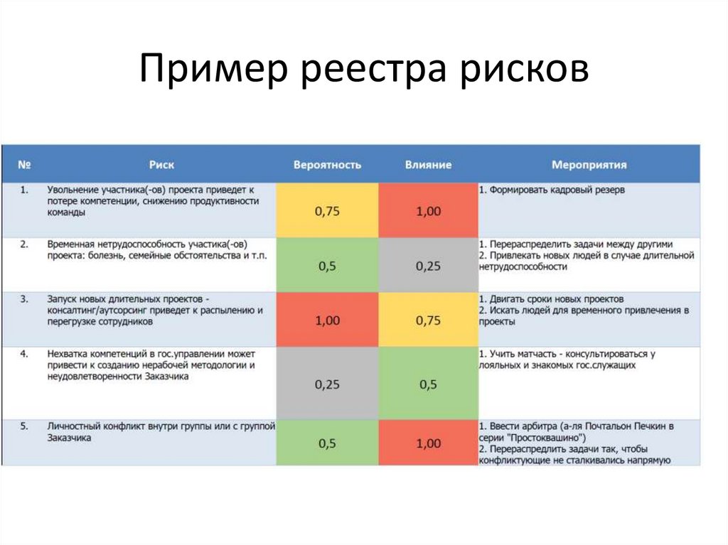 Пример реестра рисков6.