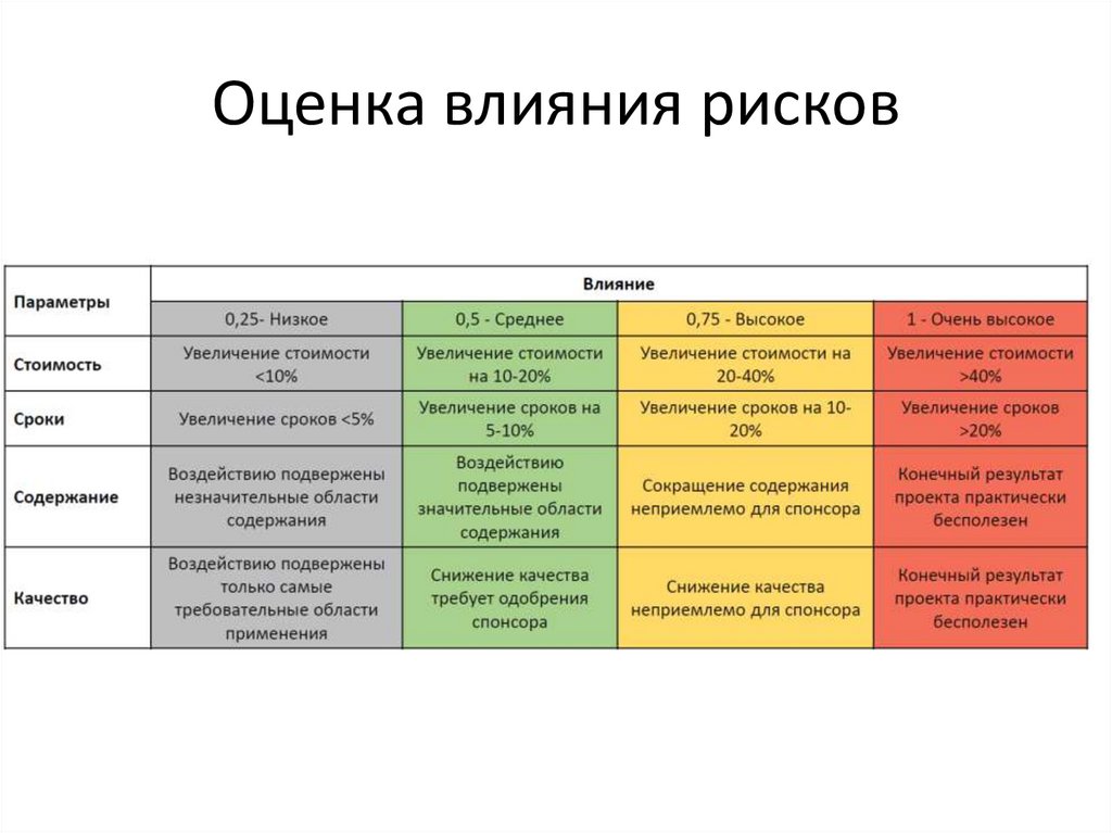 2. Составить реестр рисков с указанием влияния и вероятности (как на слайде 5).