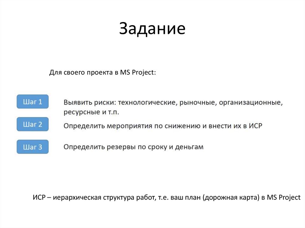 ЗаданиеДля своего проекта в MS Project: