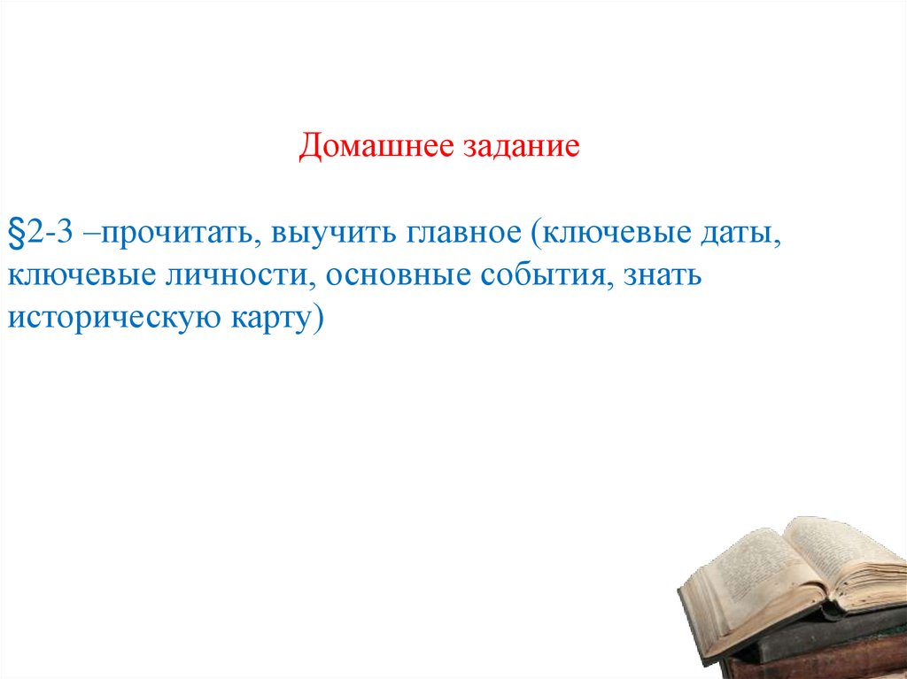 Домашнее задание§2-3 –прочитать, выучить главное (ключевые даты,