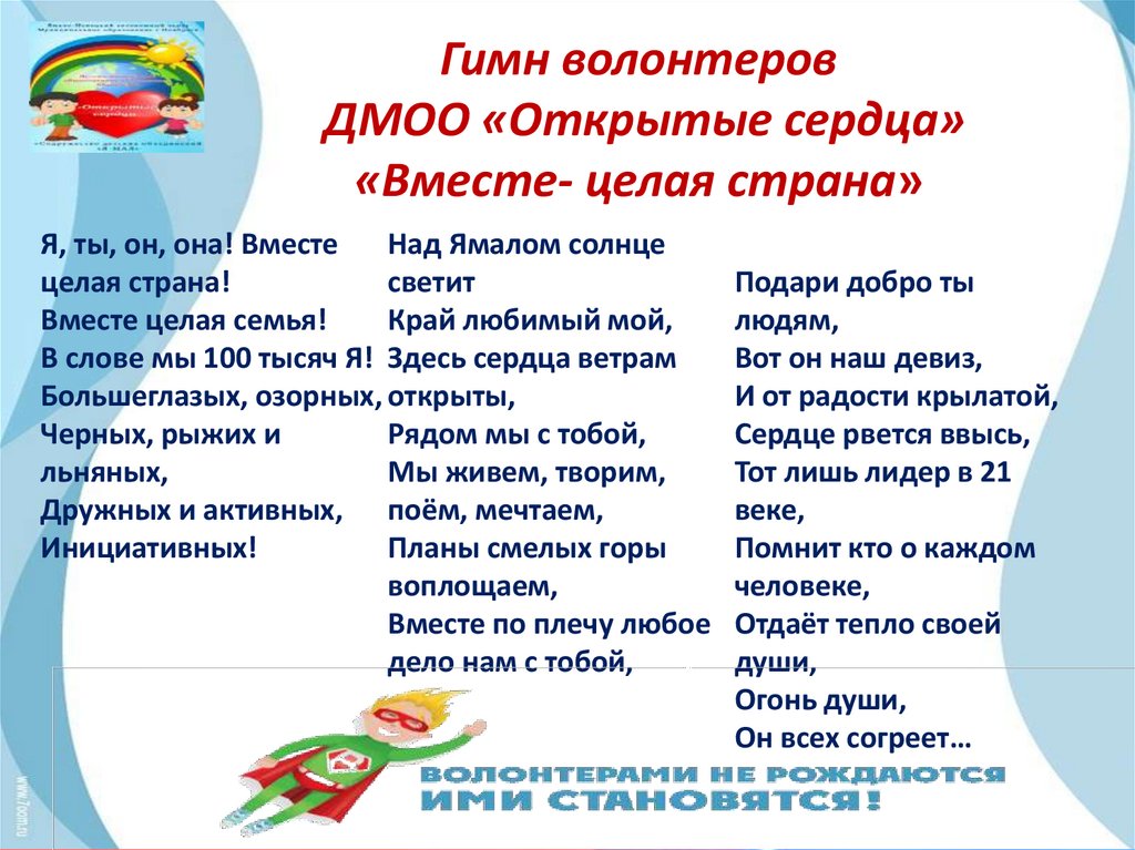 Гимн волонтеровДМОО «Открытые сердца»