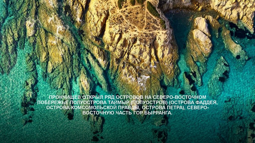 ПРОНЧИЩЕВ ОТКРЫЛ РЯД ОСТРОВОВ НА СЕВЕРО-ВОСТОЧНОМПОБЕРЕЖЬЕ ПОЛУОСТРОВА ТАЙМЫР (ПОЛУОСТРОВ) (ОСТРОВА ФАДДЕЯ,