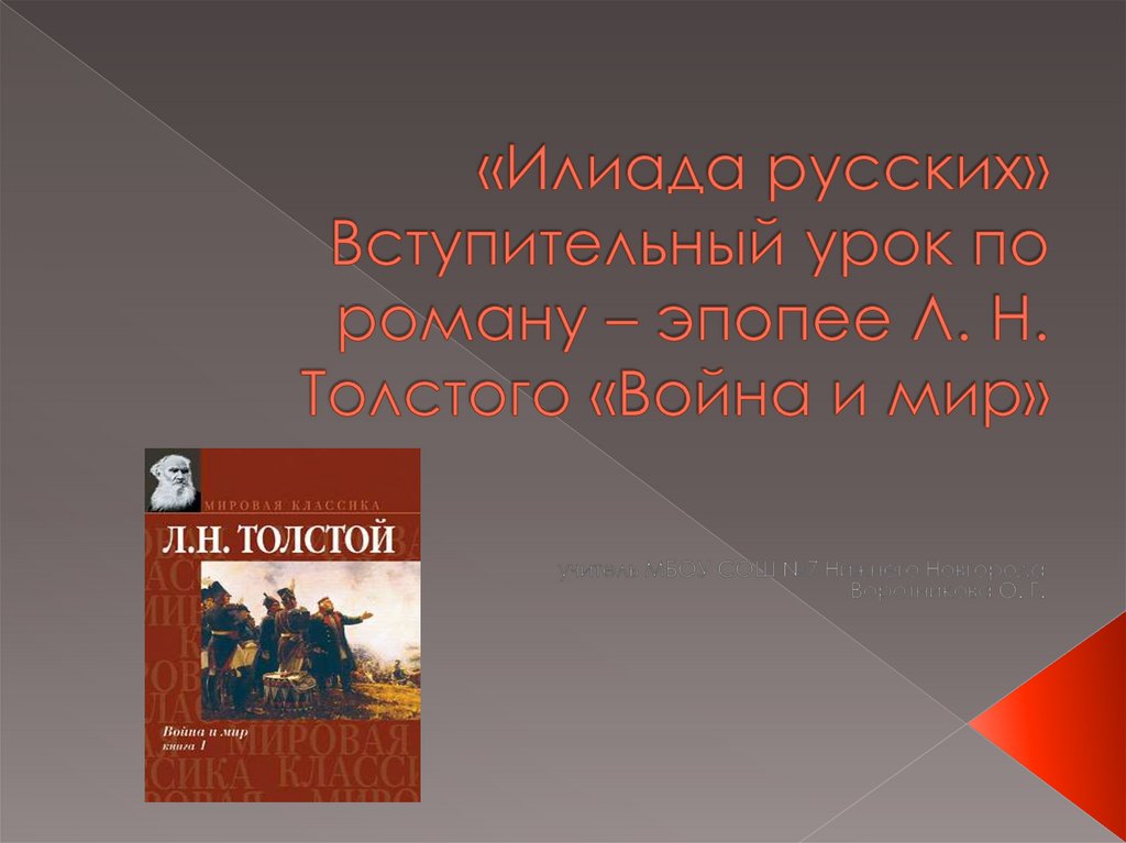 «Илиада русских». Вступительный урок по роману-эпопее Л.Н. Толстого «Война и мир»