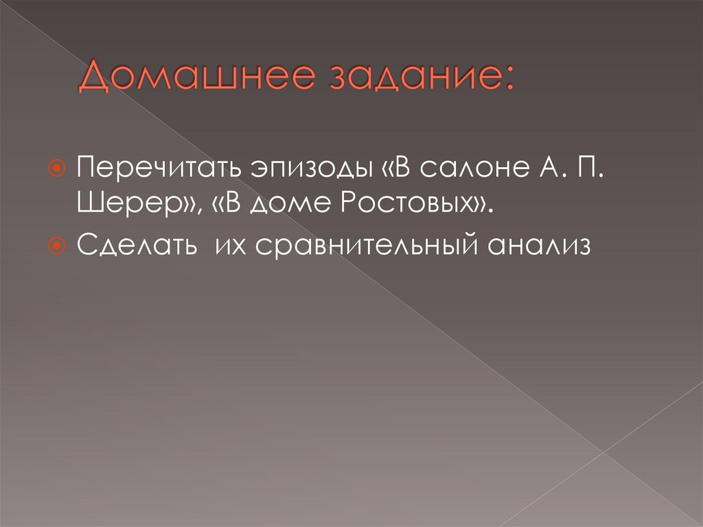 Перечитать эпизоды «В салоне А. П.Шерер», «В доме Ростовых».