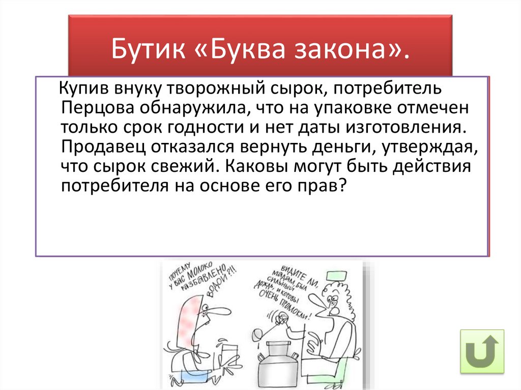 Бутик «Буква закона».Купив внуку творожный сырок, потребитель