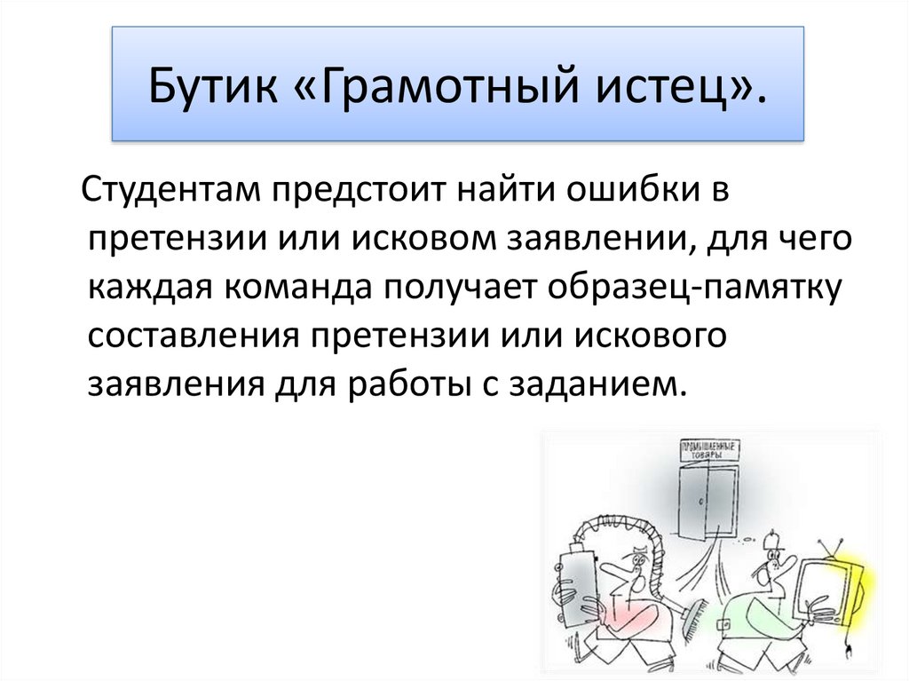 Бутик «Грамотный истец».Студентам предстоит найти ошибки в