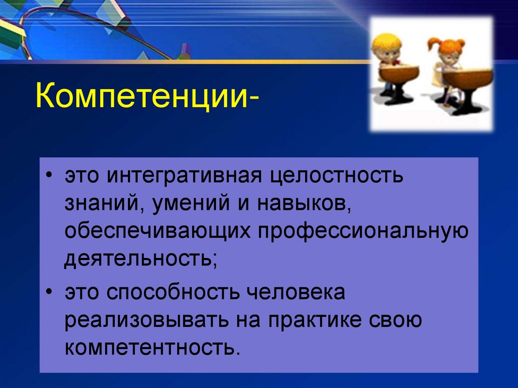 Компетенции• это интегративная целостностьзнаний, умений и навыков,
