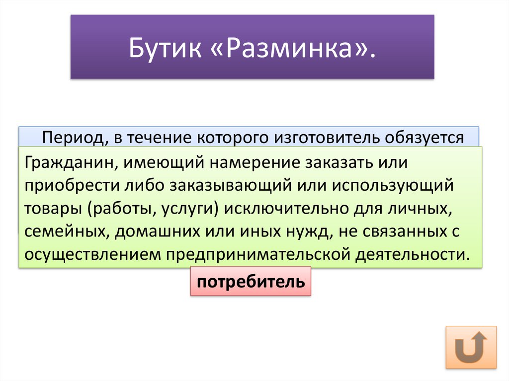 Бутик «Разминка».Период, в течение которого изготовитель обязуется