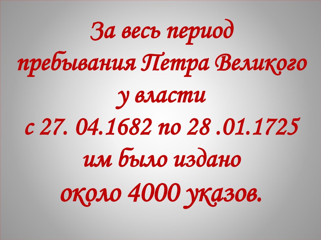 За весь периодпребывания Петра Великого