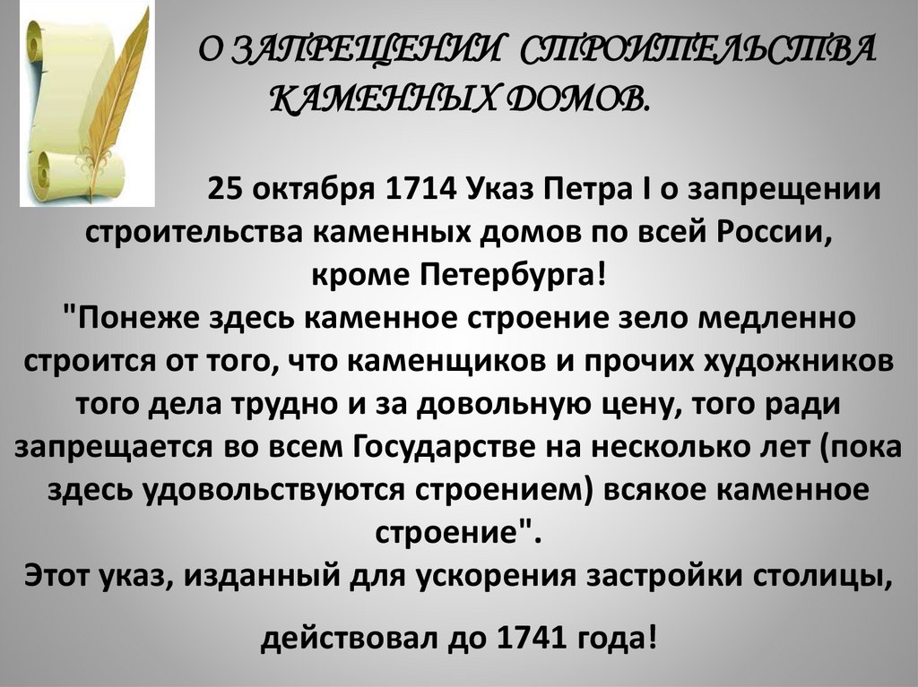 Этот указ, изданный для ускорения застройки столицы,