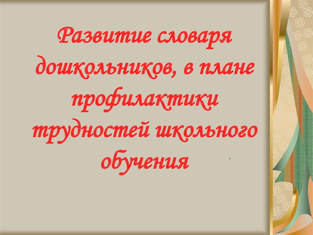 Развитие словаря дошкольников, в плане профилактики трудностей школьного обучения
