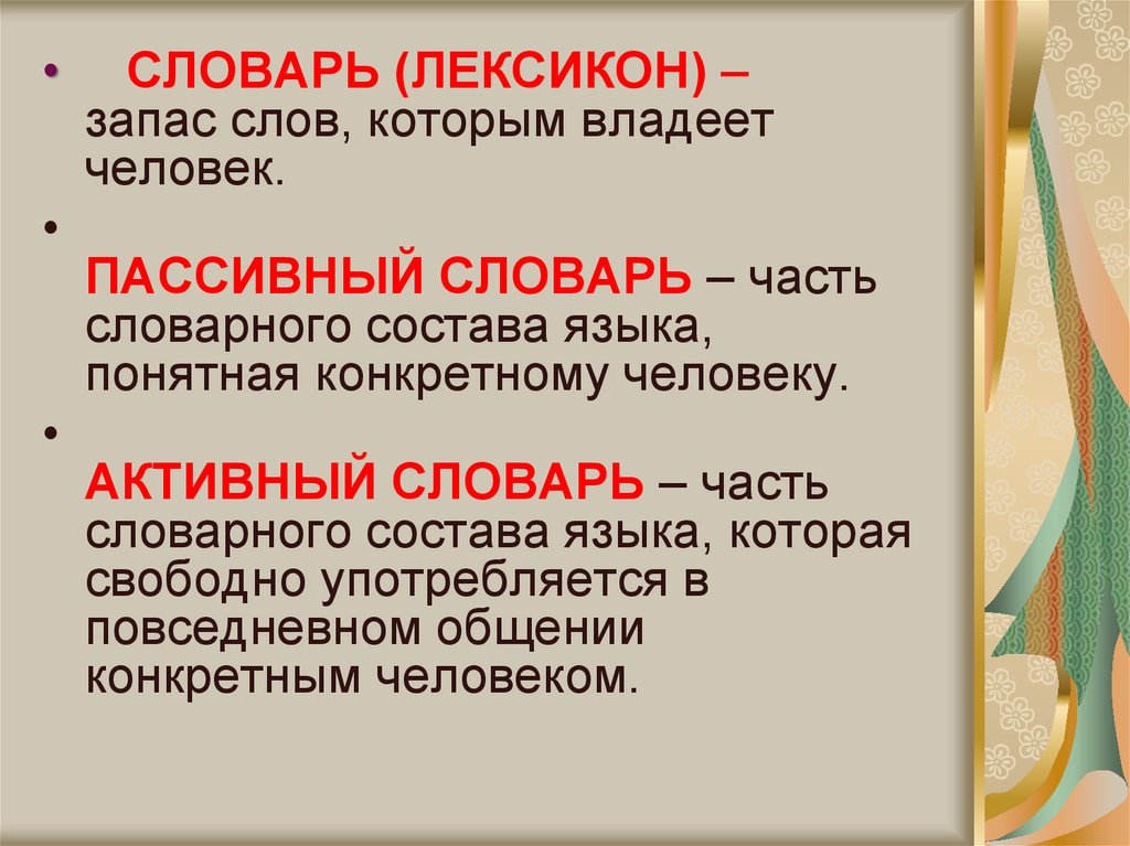 ПАССИВНЫЙ СЛОВАРЬ – часть