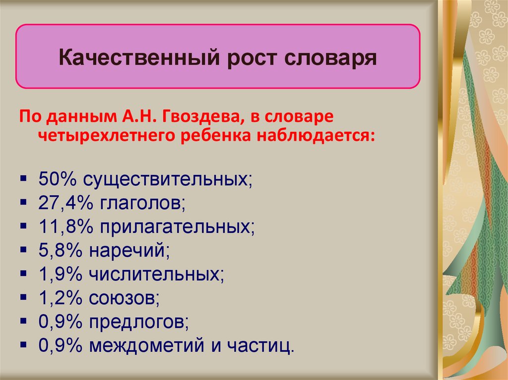 Качественный рост словаряПо данным А.Н. Гвоздева, в словаре