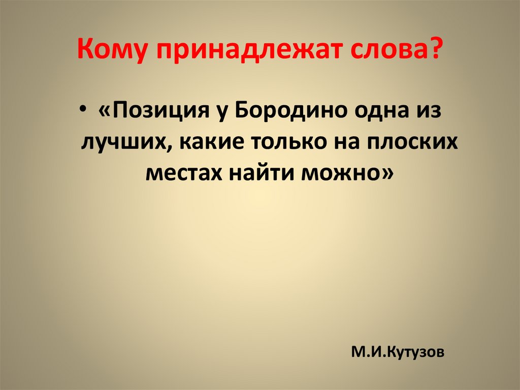Кому принадлежат слова?• «Позиция у Бородино одна из