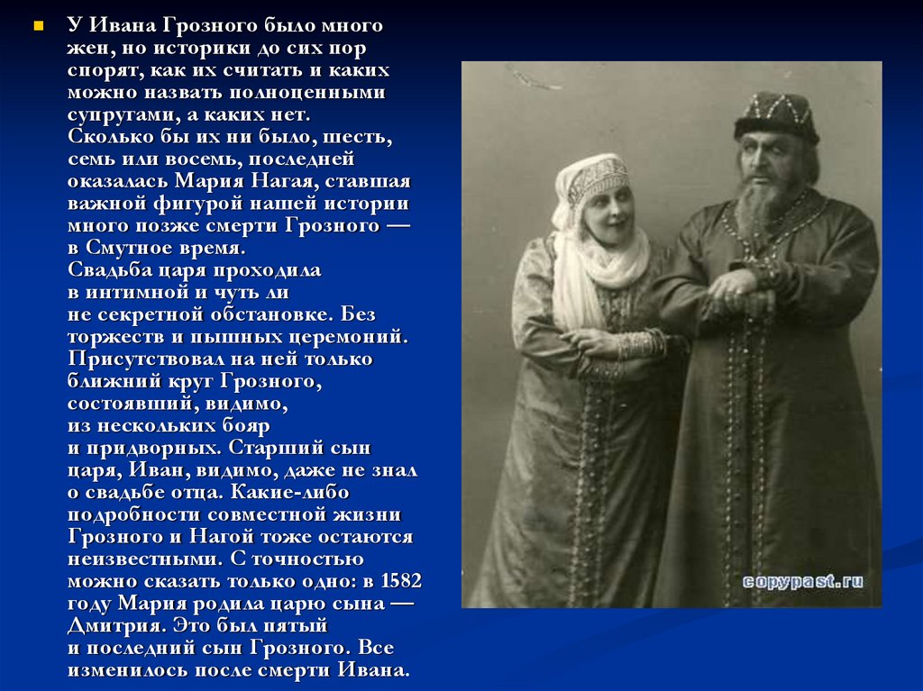 Надо понимать, что брак царяс Марией Нагой способствовал