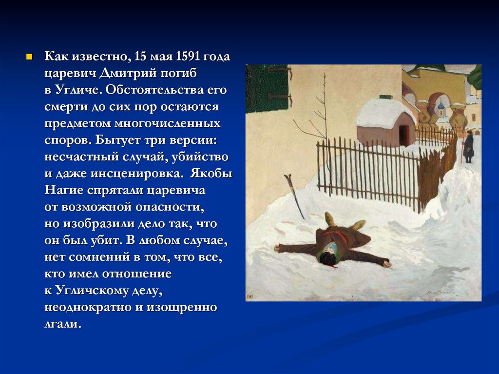 Как известно, 15 мая 1591 годацаревич Дмитрий погиб