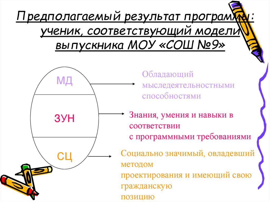 Предполагаемый результат программы:ученик, соответствующий модели