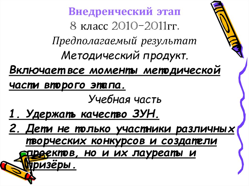 Внедренческий этап8 класс 2010-2011гг.