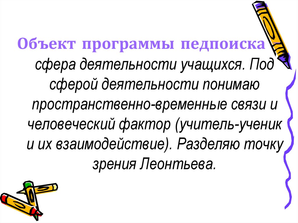 Объект программы педпоиска сфера деятельности учащихся. Подсферой деятельности понимаю