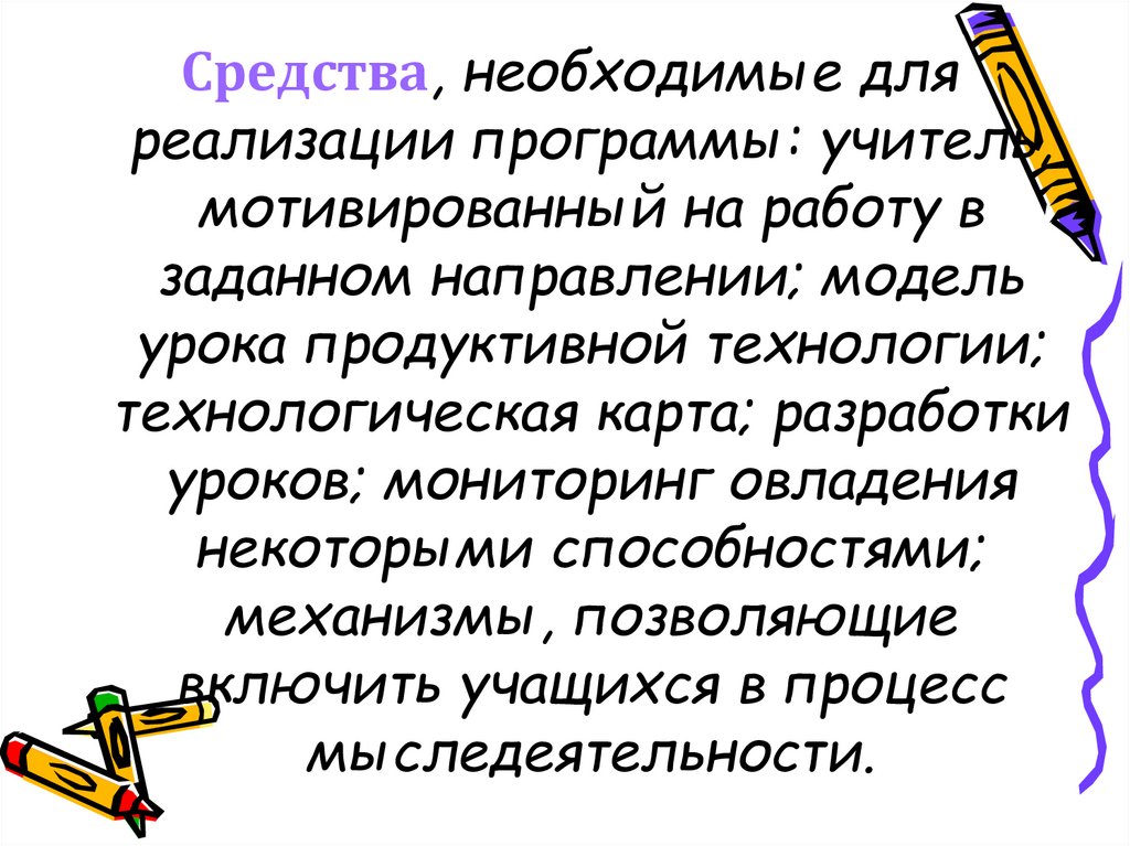 Средства, необходимые дляреализации программы: учитель,