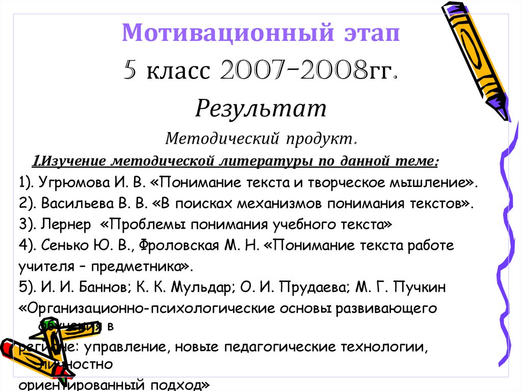 Мотивационный этап5 класс 2007-2008гг.