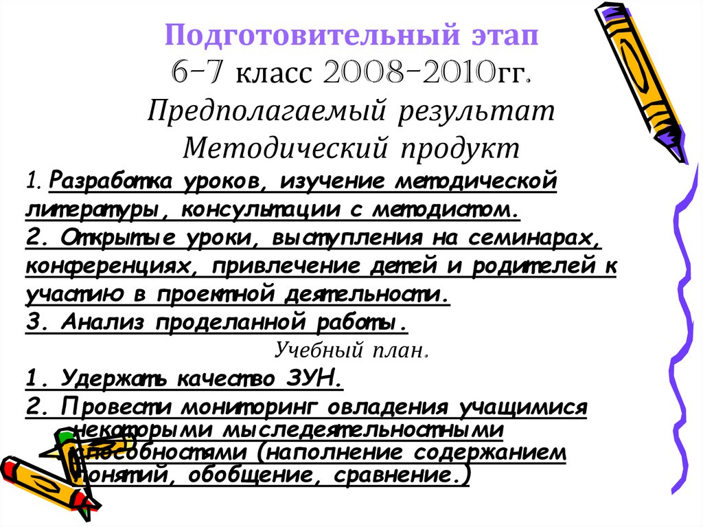 Подготовительный этап6-7 класс 2008-2010гг.