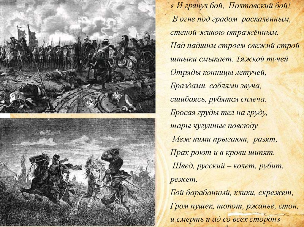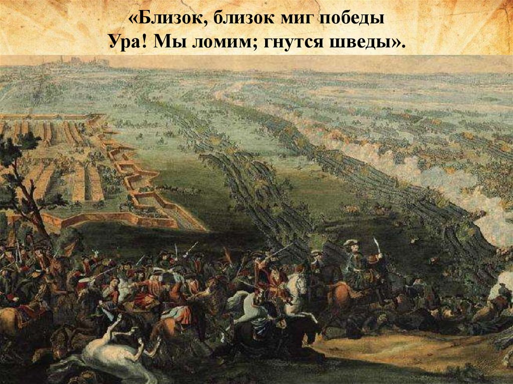 «Близок, близок миг победыУра! Мы ломим; гнутся шведы».