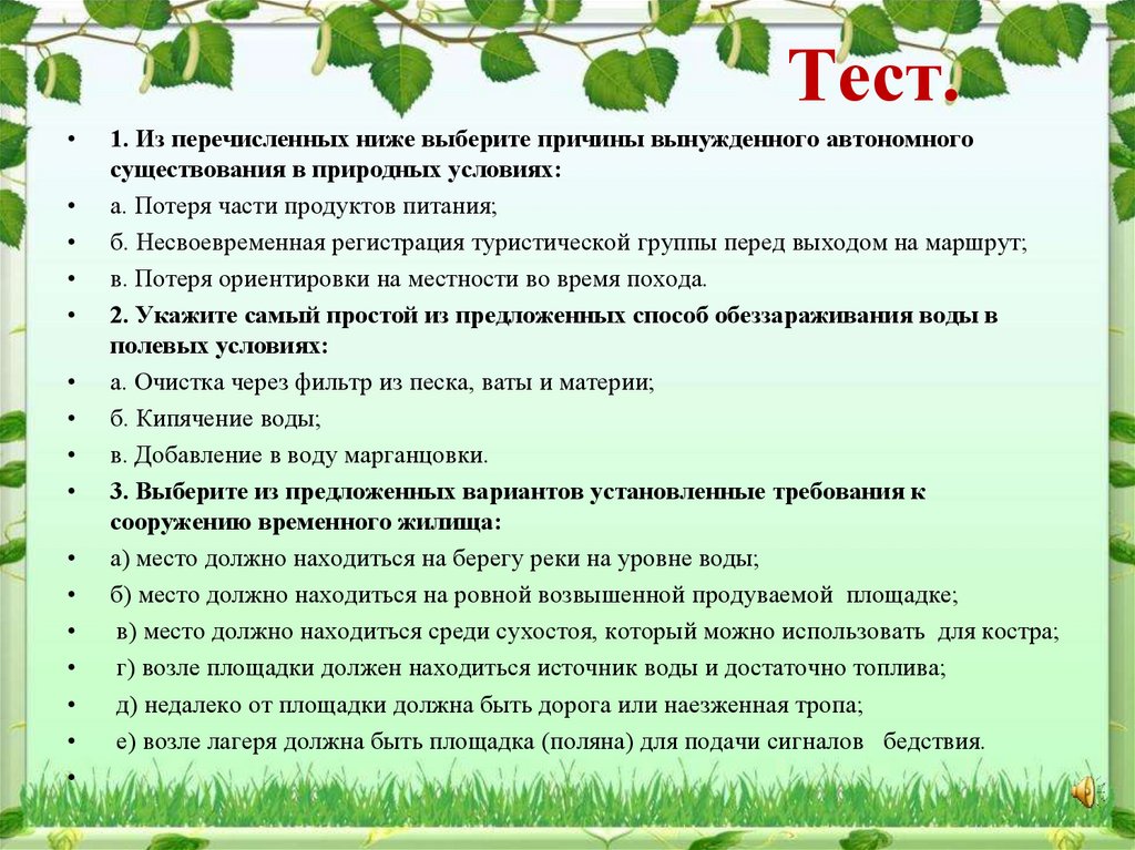 Тест.1. Из перечисленных ниже выберите причины вынужденного автономного
