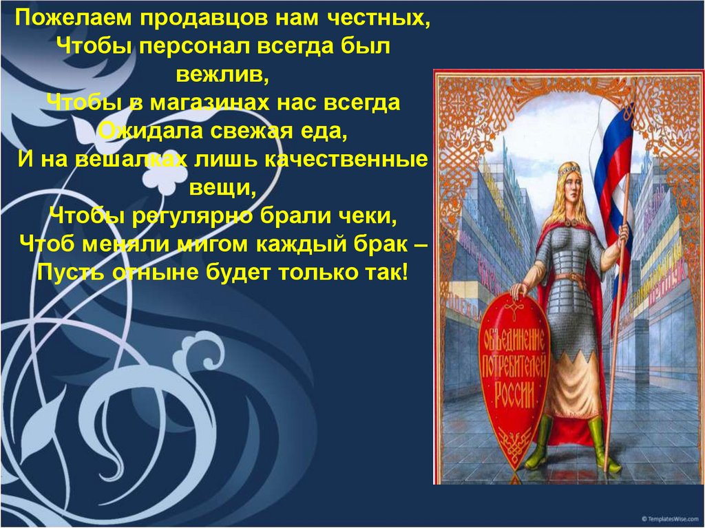 Пожелаем продавцов нам честных,Чтобы персонал всегда был