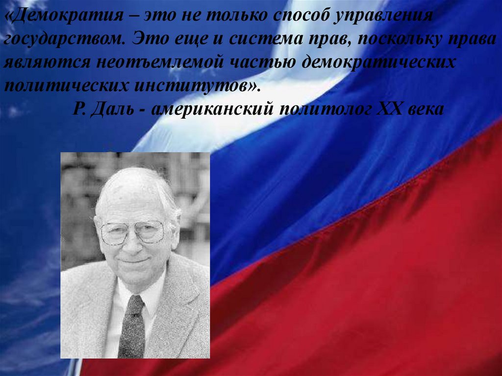 «Демократия – это не только способ управлениягосударством. Это еще и система прав, поскольку права