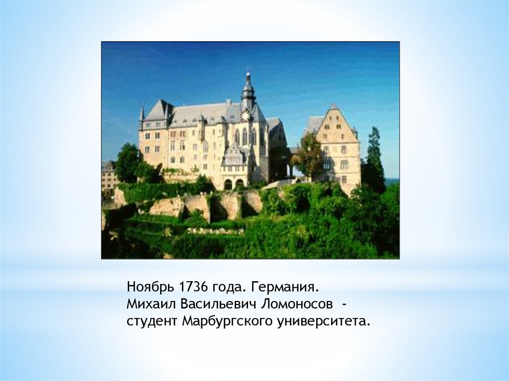 Ноябрь 1736 года. Германия.Михаил Васильевич Ломоносов студент Марбургского университета.